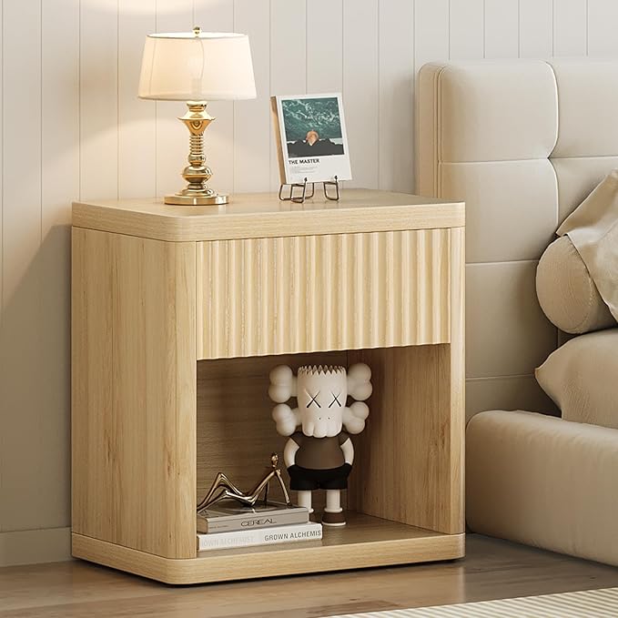 【Chic Style, Great Detail】:A blend of aesthetic flair and function, enliven your dull space! Featuring sleek curves and a waveform panel, our side tables living room complement all decor styles, from contemporary to midcentury. For reliable use, the small nightstand has rounded corners to shield your kids and family from careless bumps.